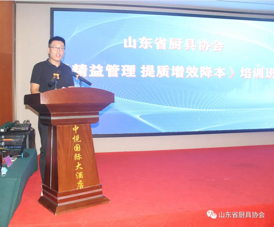 2021年8月3日,为建立全价值链成本最低的高效生产运作模式,确立企业的竞争优势,山东省厨具协会在滨州举办了《精益管理 提质增效降本》培训班。山东省厨具协会会长王炳森、监事长朱永刚、部分副会长、理事、会员以及兴福镇部分厨具企业主要负责人参加了本次培训活动。
