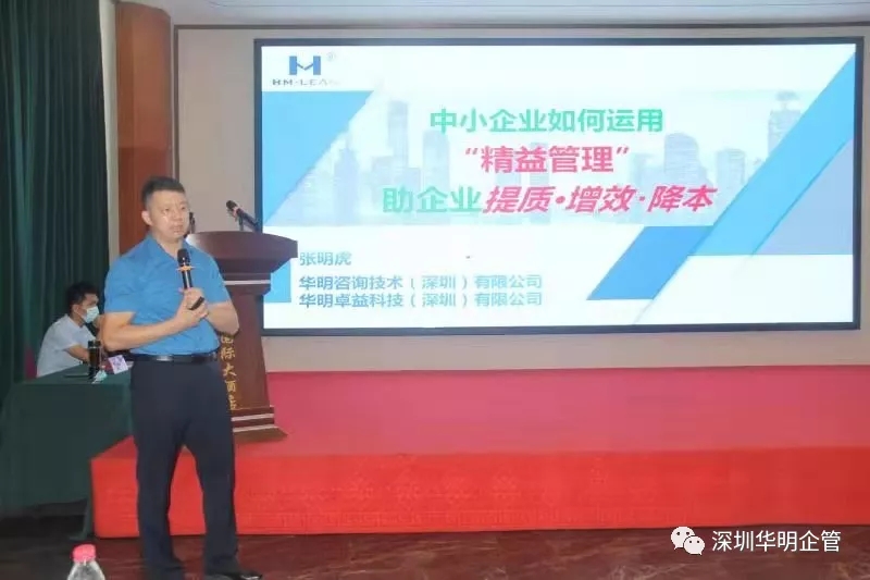 培训班上,张明虎老师重点解析了制造型企业痛点、解决方案、实施精益管理为企业创业创造价值、企业导入精益管理规划、领导如何修炼精益之心等方面做了深入浅出的讲解。